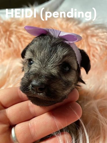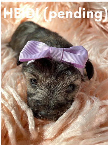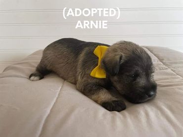 Our Puppies are the Standard Miniature Schnauzers. Our puppies are raised and live with us right in our home as part of the family. The puppies are happy, healthy, very friendly, loving and socialized. Before going home your puppy will be checked by a vet and given their first set of shots. Their tails are docked and their dew claws removed, we leave their ears natural.